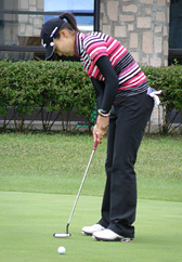 私はアマチュアのときからダンロップのボールを使っています。初めて使ったのは、たしか中学2年生のころで、それからボールはずっとダンロップです。今のボールは『スリクソンZ-STAR X』。昨シーズンの開幕から愛用しています。ボールのナンバーは「11」と「3」。なぜ「11」を指定しているかと言うと、師匠の岡本綾子さんに言われたからです。岡本さんいわく、「11」は私のラッキーナンバーなんだそうです(笑)。それと、暫定球を打ったりすることもあるので、もうひとつ「3」を選びました。これは、私の誕生日の3月3日から決めました。